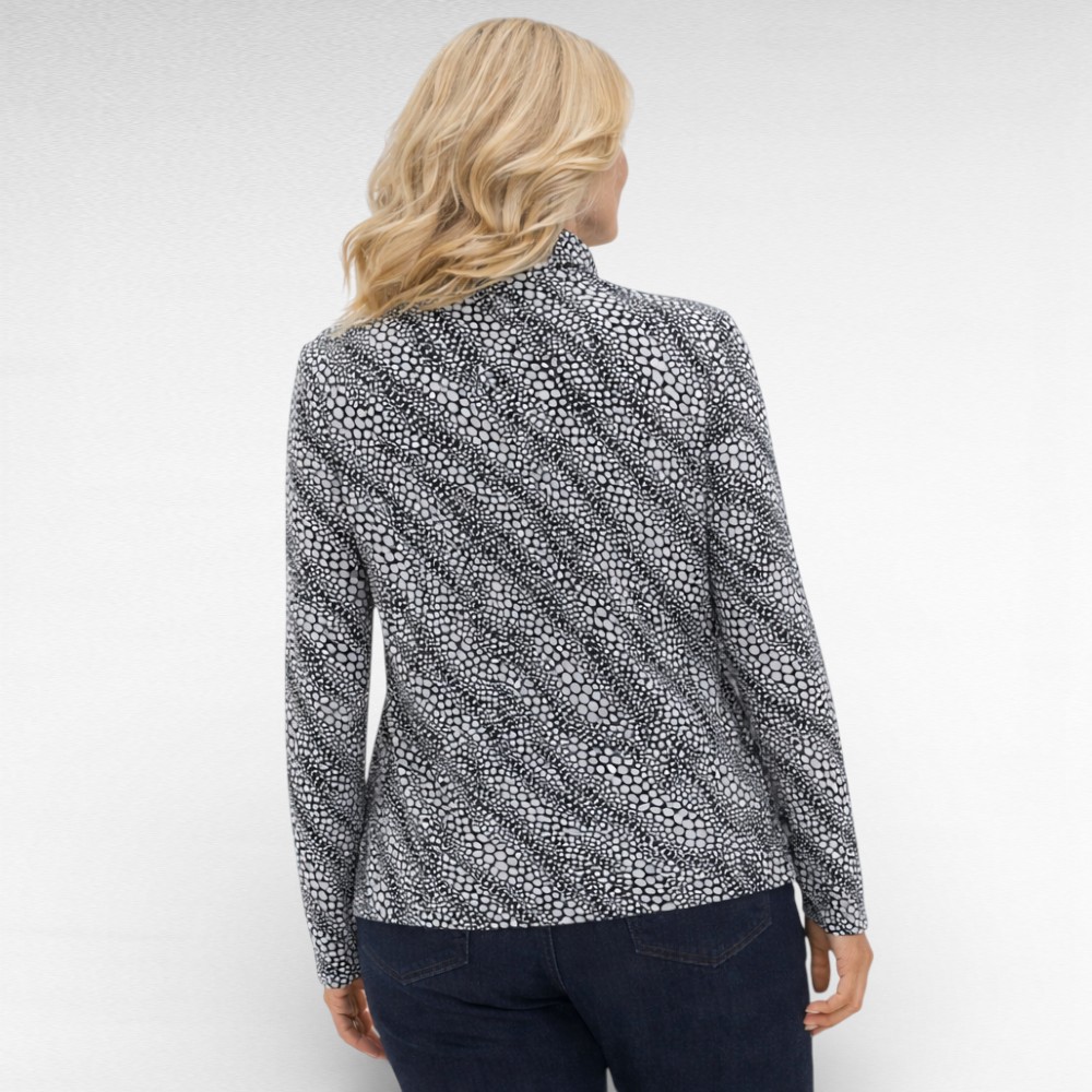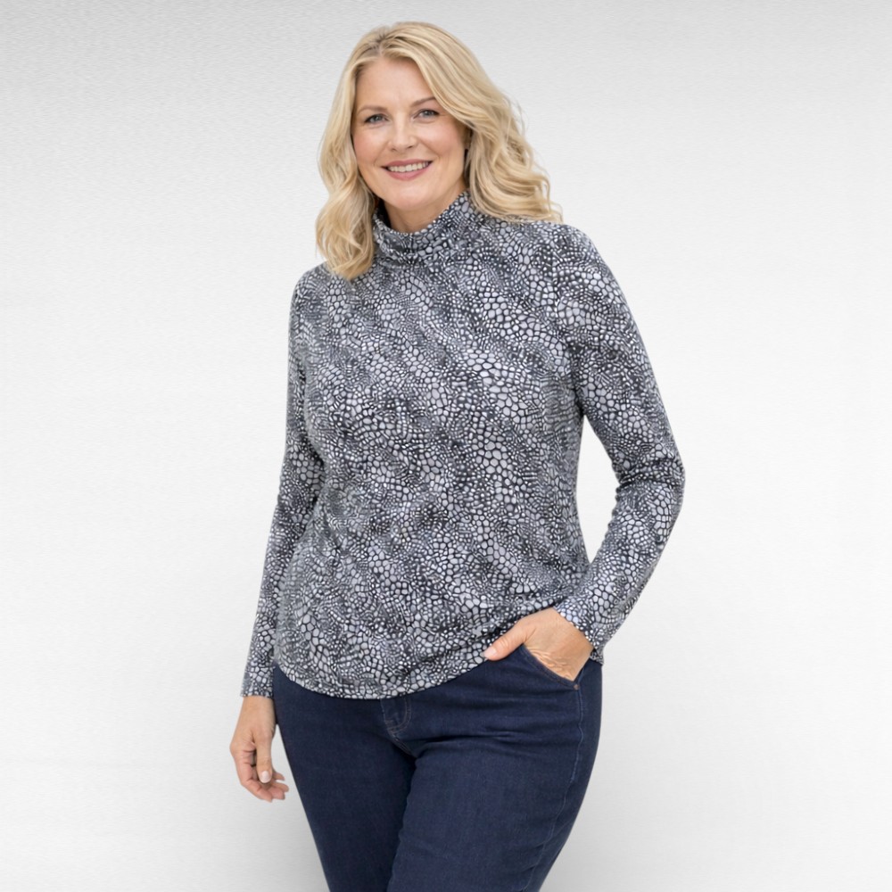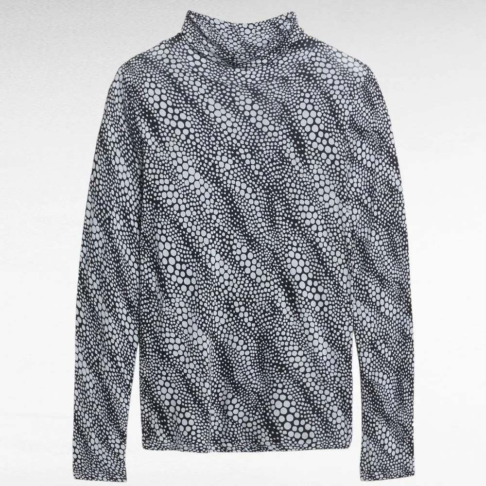 Väga heast pehmest materjalist must halli- ja valgekirju mummulise mustriga rullkaelusega pluus/sviiter Inglismaalt firmalt “Marks and Spencer”.