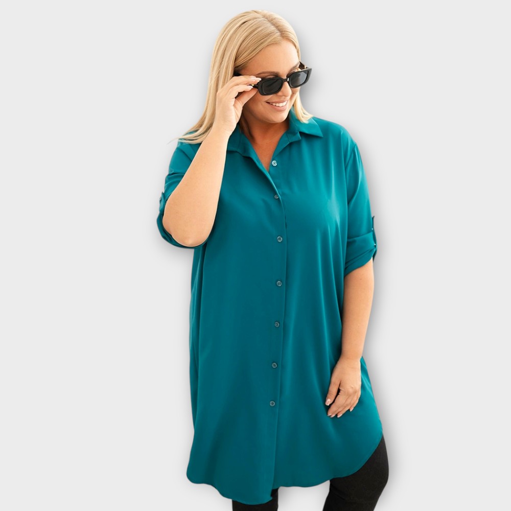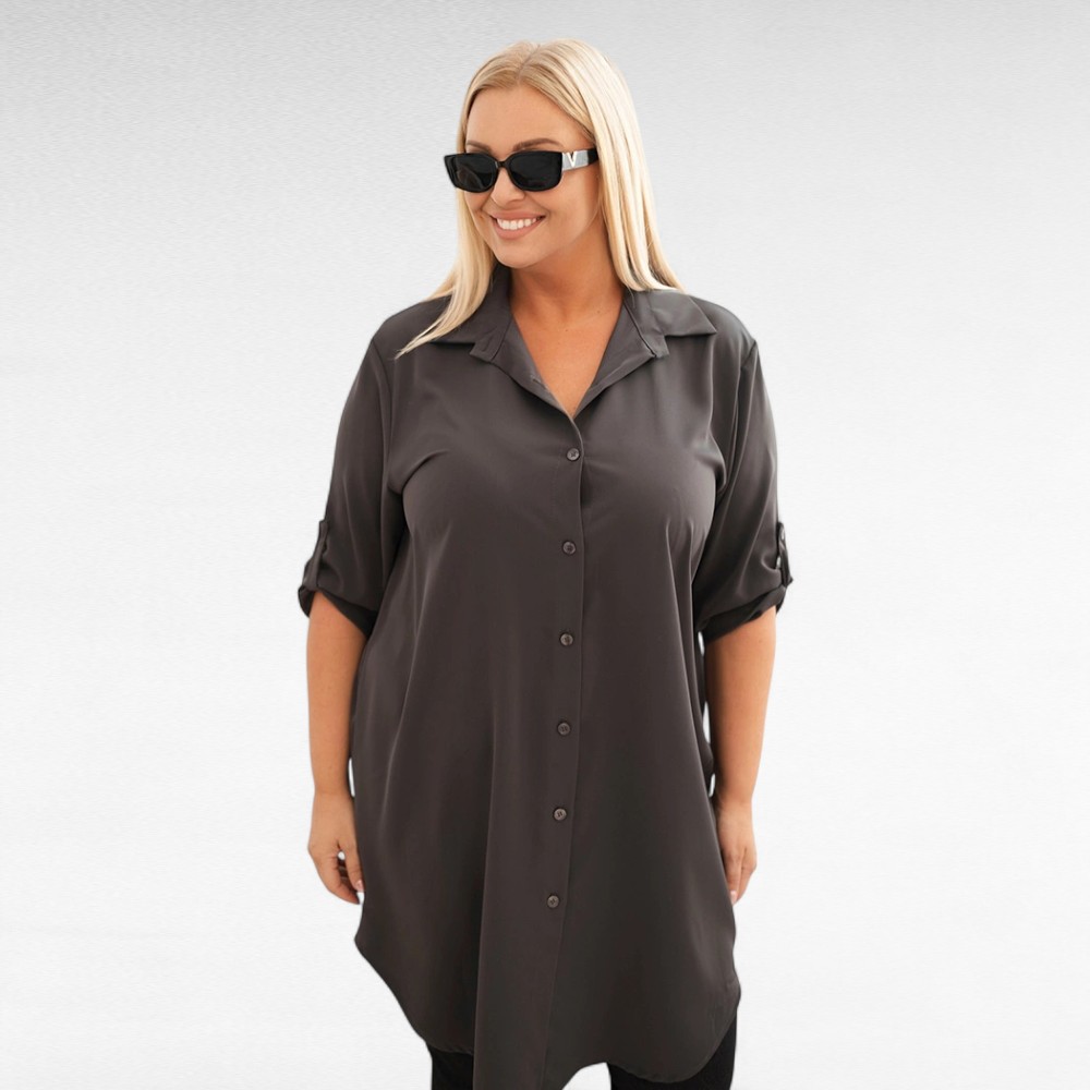 See Itaalias valmistatud pikk pluus/tuunika on loodud neile, kes hindavad mugavust ja ajatut elegantsi. Kergeltlangev, särgilik lõige järgib liikumist ja loob kauni, voogava silueti, mis tundub nahal pehme ja kerge.