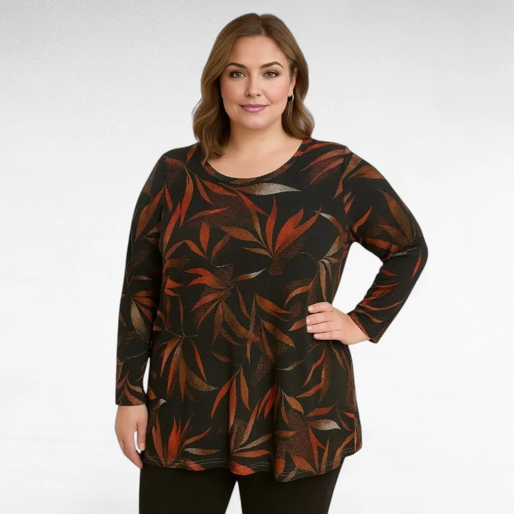 „Nelly“ on soe ja pehme pikkade varrukatega pluus, mis pakub nii mugavust kui ka stiili.  Lehemuster loob rikkaliku ja sügiseselt sooja värvimängu.