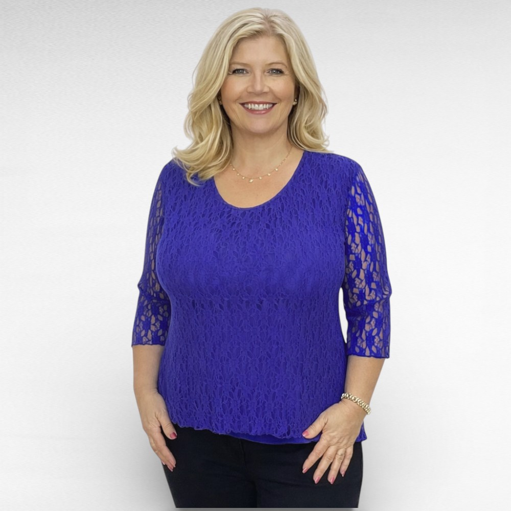 Lillakassinine lühikeste varrukatega alt voodriga sirge lõikega pitspluus Inglismaalt firmalt “Eaonplus”.