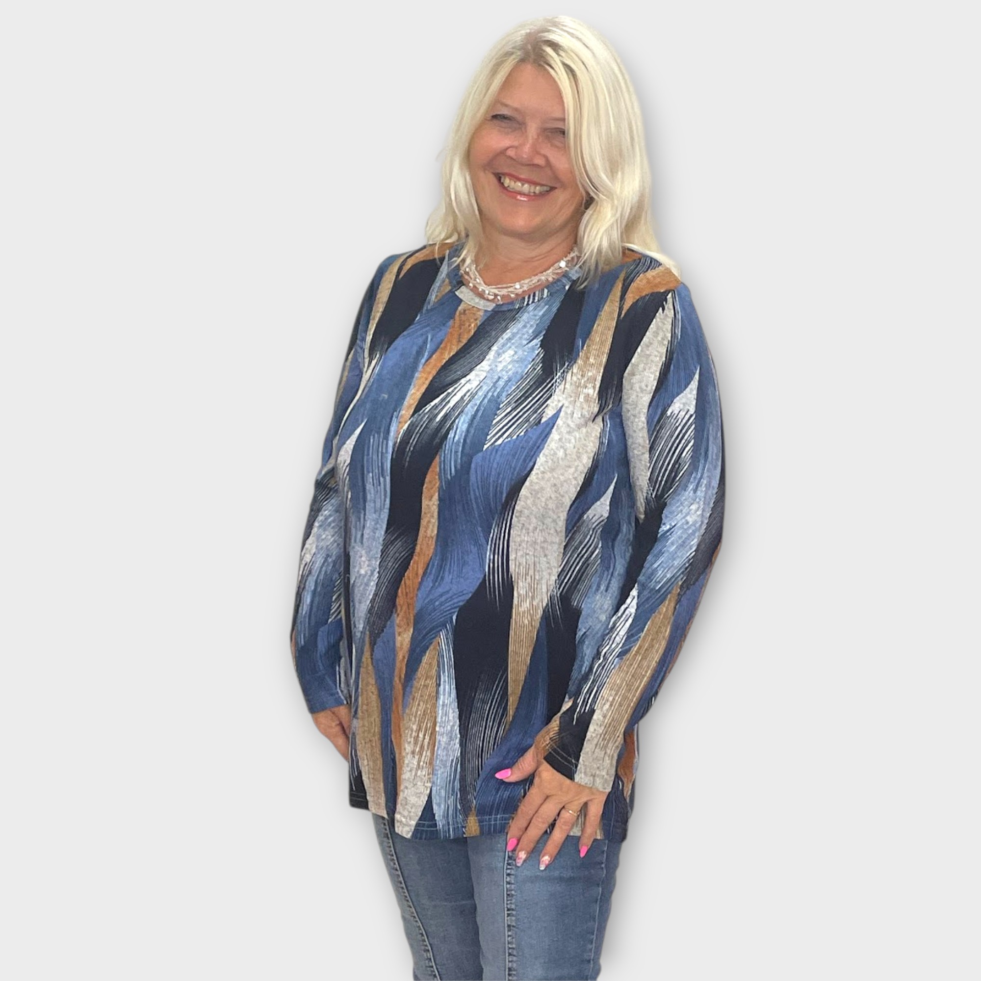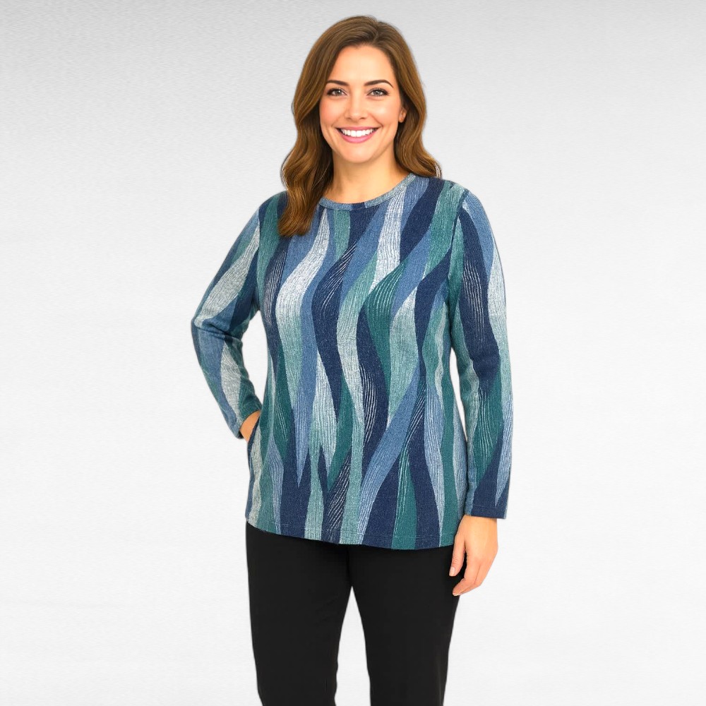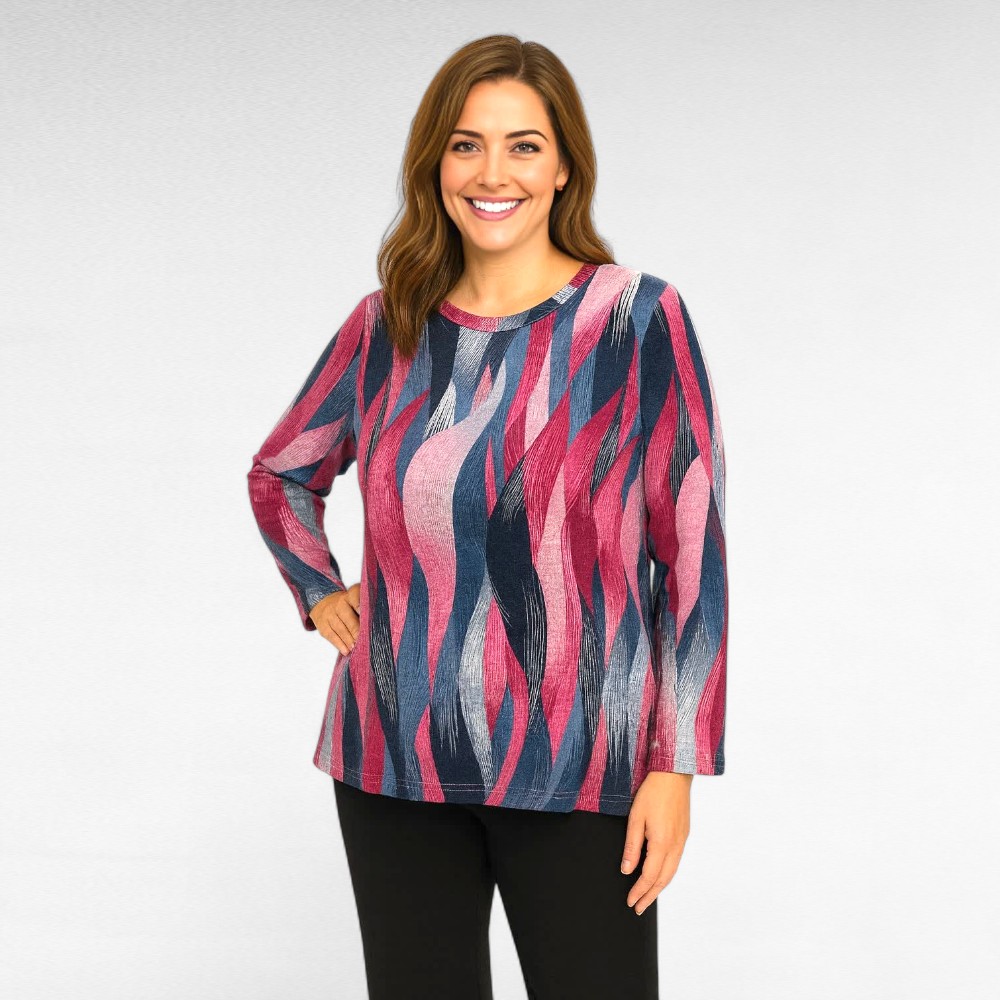 Pehmest soojemast kangast pikkade varrukatega kirju mustriga pluus “Siki”. Sobib hästi jahedamal ajal pükstega kandmiseks.