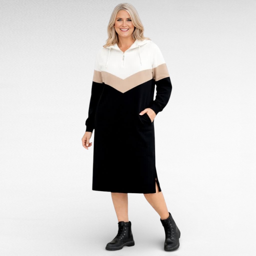 Dresskleit „Rue Paris“ on loodud naisele, kes hindab head enesetunnet igas hetkes. Pehme ja soe puuvillane materjal paitab keha ning hoiab mõnusalt, olgu ees jalutuskäik linnas, rahulik päev kodus või spontaanne kohvikukülastus. Sportlik lõige ja kapuuts annavad kleidile kaasaegse, pingevaba ilme – just sellise, mis ei üle ülepingutatud, vaid toetab sinu loomulikku stiili.