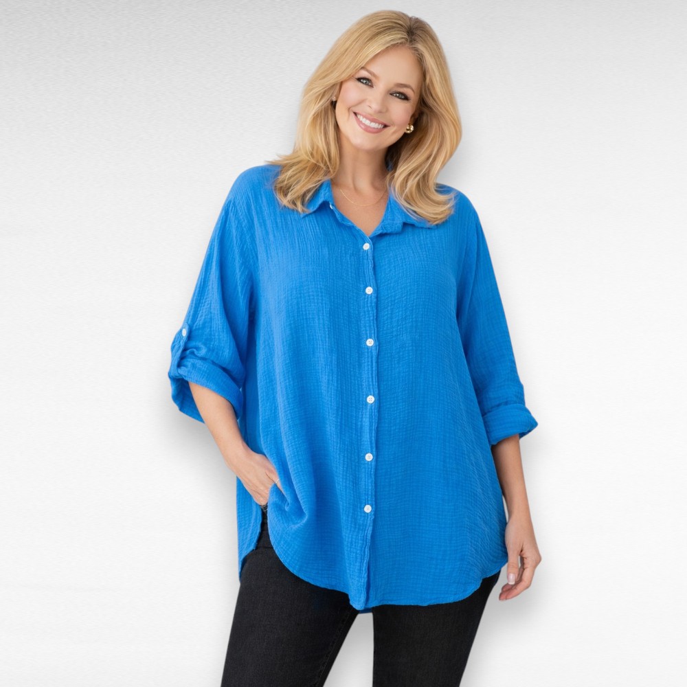 Kerge, hingav ja imepehme puuvillasest musliinkangast pluus, mis langeb kaunilt ja annab kandjale vabaduse tunda end enesekindlalt igas olukorras.