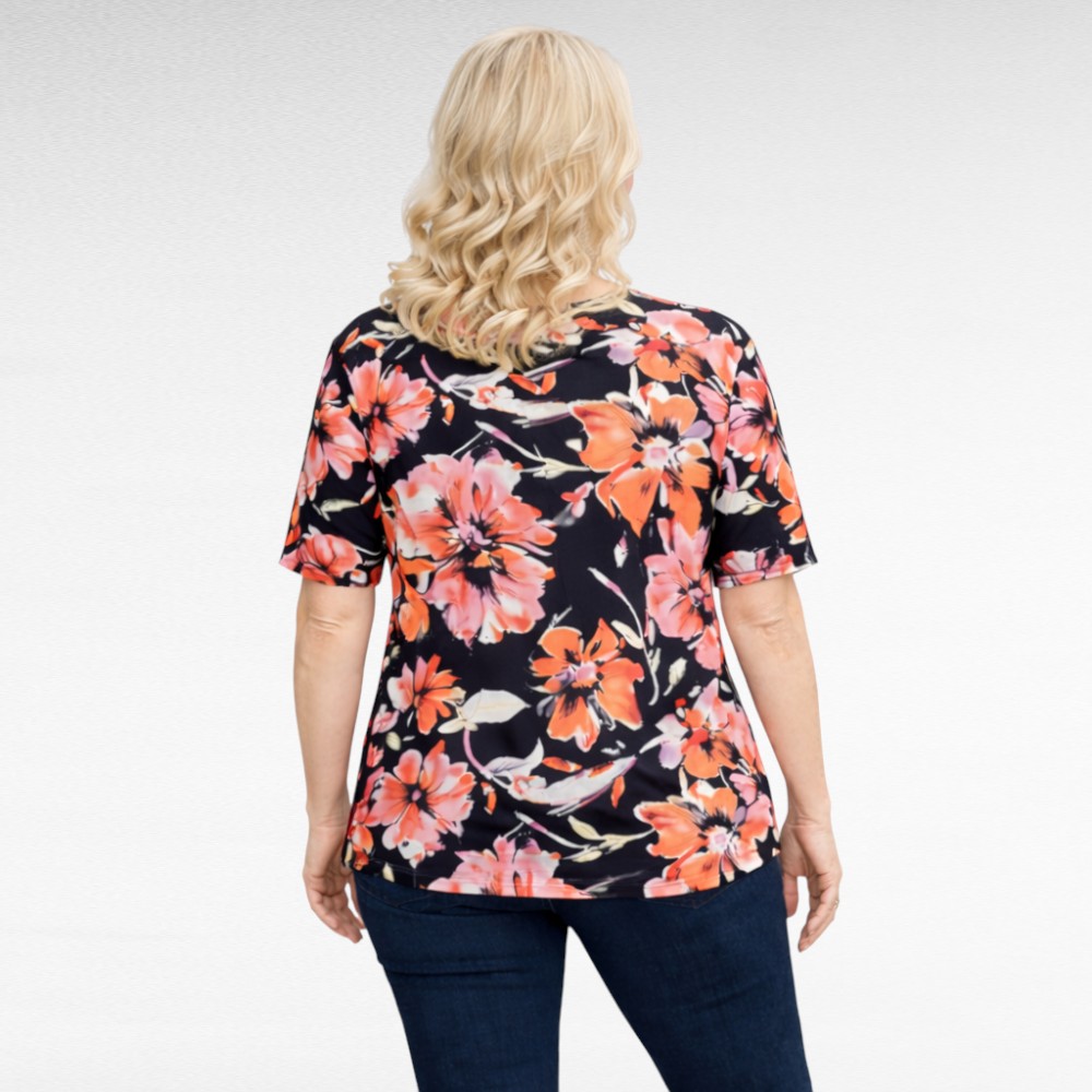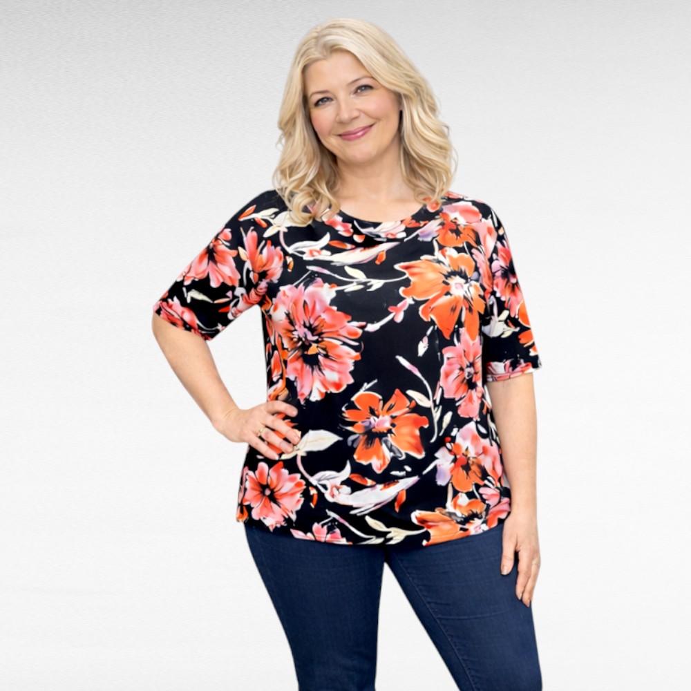 See oranžikirju pluus on loodud naisele, kes hindab mugavust, pehmust ja rõõmsat mustrit. Õhuline ja veidi veniv materjal langeb kaunilt, ei pigista ning laseb end kanda kogu päeva kerge ja muretuna. Lühikesed varrukad ja naiselik lõige teevad sellest ideaalse kaaslase igaks päevaks. Kanna seda kaunil suvepäeval – olgu sind ees ootamas jalutuskäik, kohtumine sõbrannaga või lihtsalt mõnus päev iseendale või talvel sooja kardigani all.