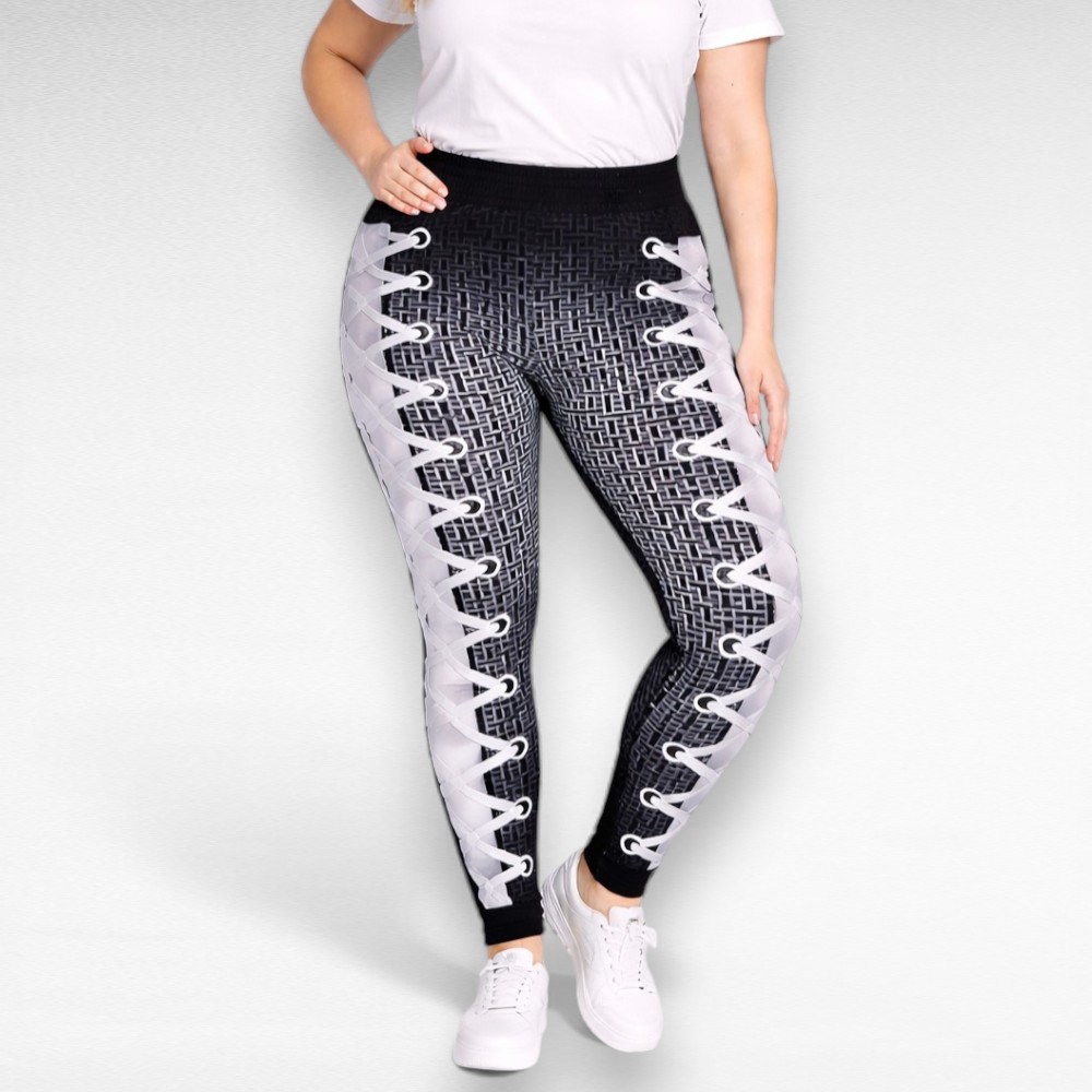 Pilkupüüdva musta-ja valgekirju mustriga siidjast materjalist täispikad pluss suuruses suvised naiste retuusid.