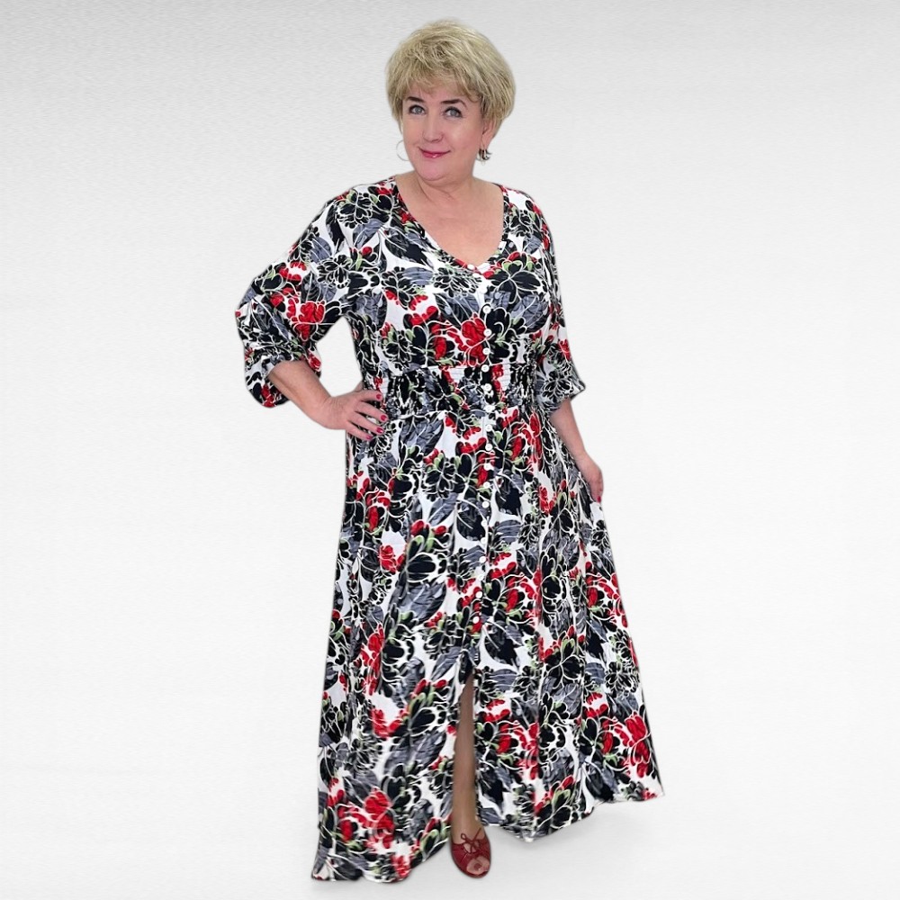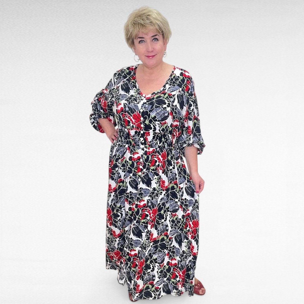 See kaunis punase- ja mustakirju lillemustriga kleit on loodud just pluss suuruses naisele, kes hindab nii stiili kui ka kandmismugavust. Itaalia brändi “BigLove” disain ühendab ajatu elegantsi ja praktilisuse – tulemuseks kleit, mida tahad kanda iga päev.