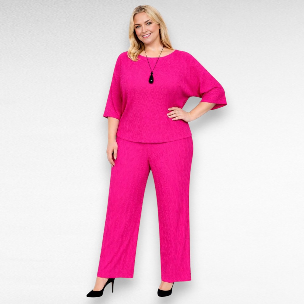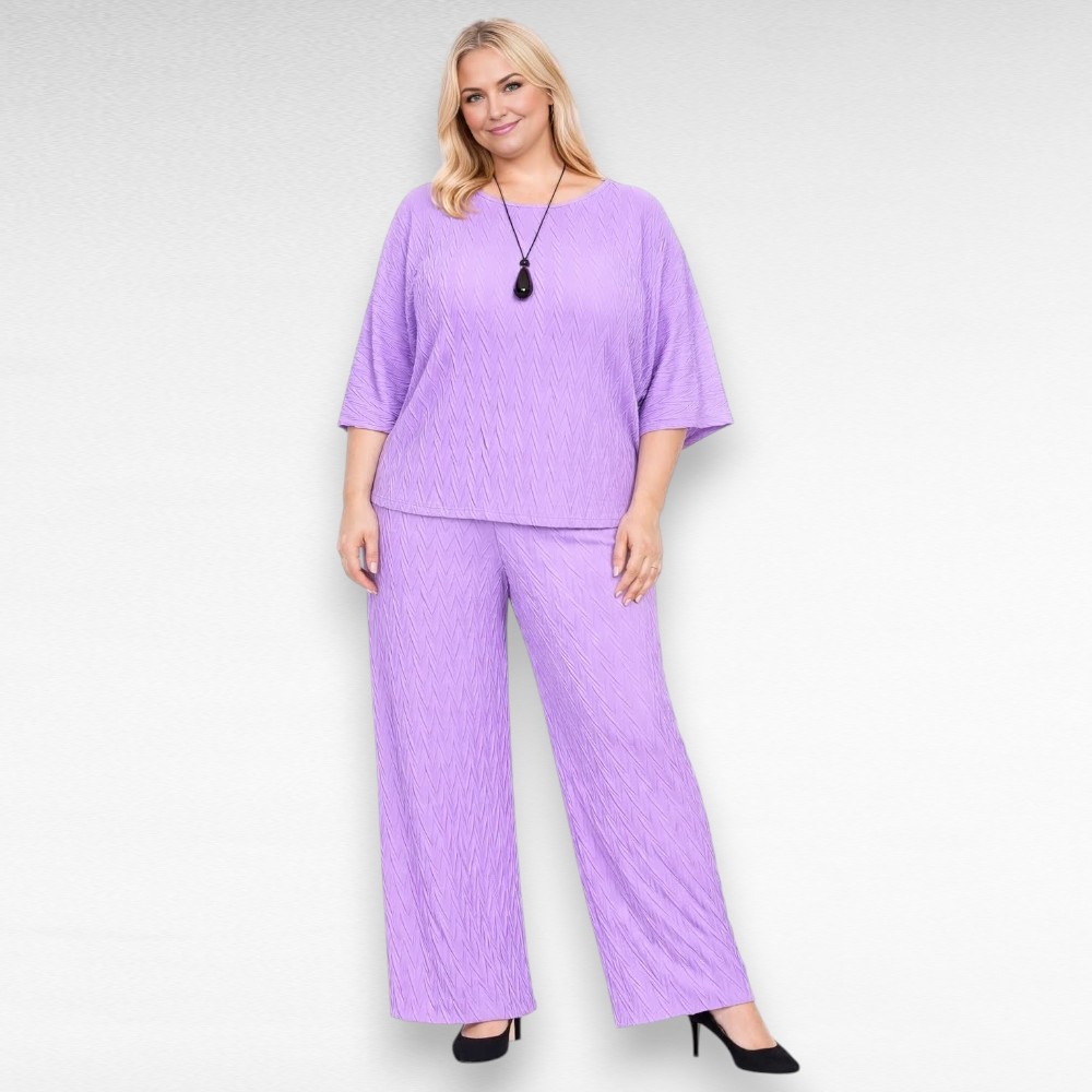 See kaunis 2-osaline komplekt toob esile naiselikkuse ja enesekindluse just pluss suuruses kandjale. Pehme, kergelt veniv reljeefne materjal langeb kaunilt ja annab kehale õhulise, mugava tunde – täpselt see, mida soojadel päevadel vajad 💜
