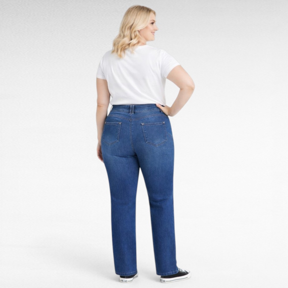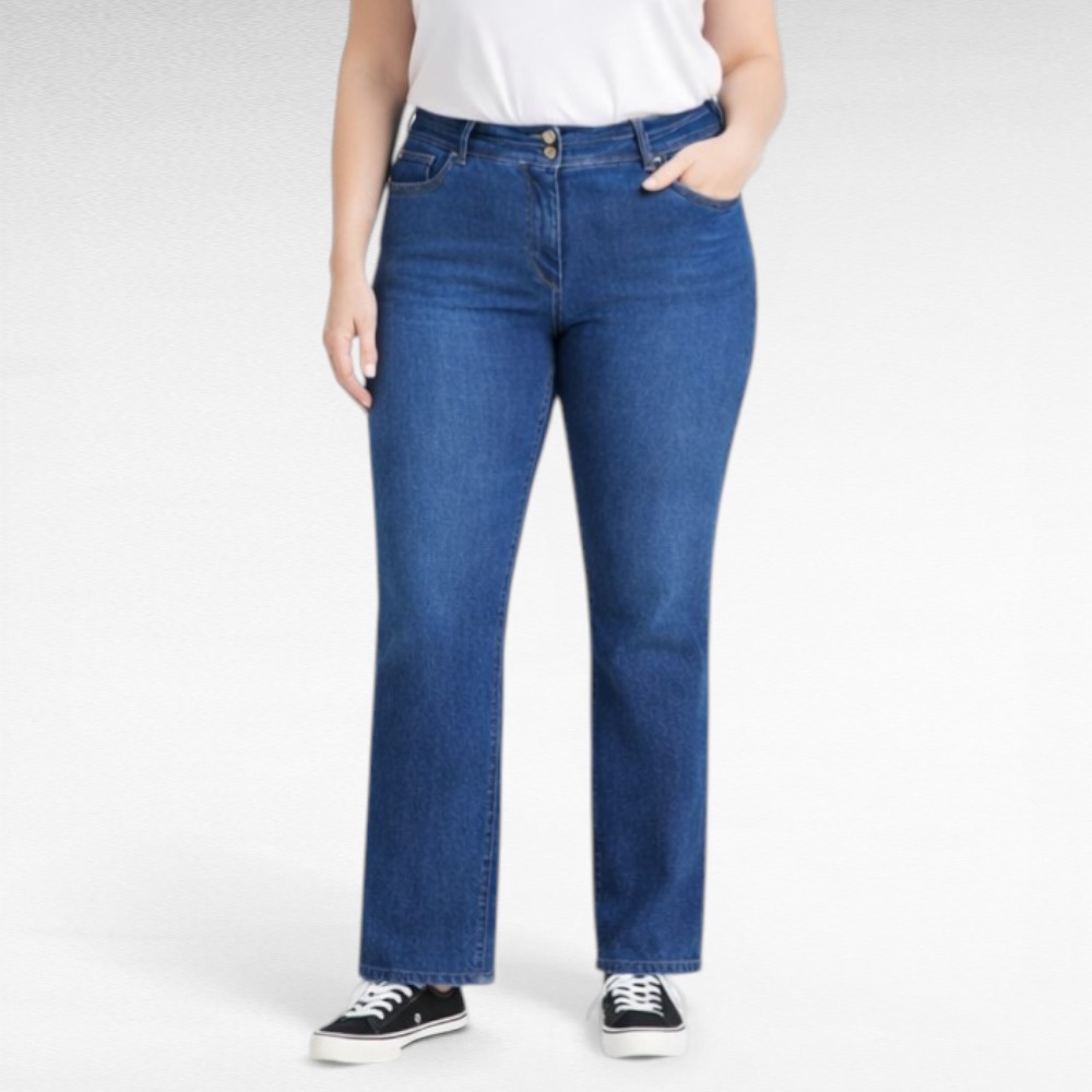 Väga mugavad kõrgema ülaosaga keha korrigeerivad push up lõikega sinised stretchteksapüksid Inglismaalt firmalt “Simply Be”. Eest kinnituvad luku ja 2 neediga, ees ja taga taskud. Sirge lõikega.