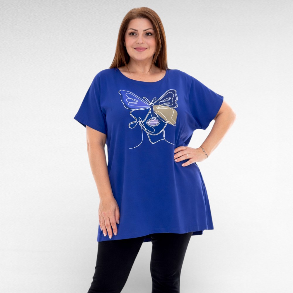 Mugav ja naiselik pluss suuruses tuunika, mis teeb igapäevase riietumise lihtsaks ja enesekindlaks. Pehmest ja hästi venivast puuvillasest materjalist mudel langeb kaunilt ning alt veidi laienev lõige toob figuuri õrnalt esile. Pilkupüüdev näo- ja liblikamuster lisab isikupära, samas kui ühevärviline seljaosa hoiab üldmulje tasakaalus.