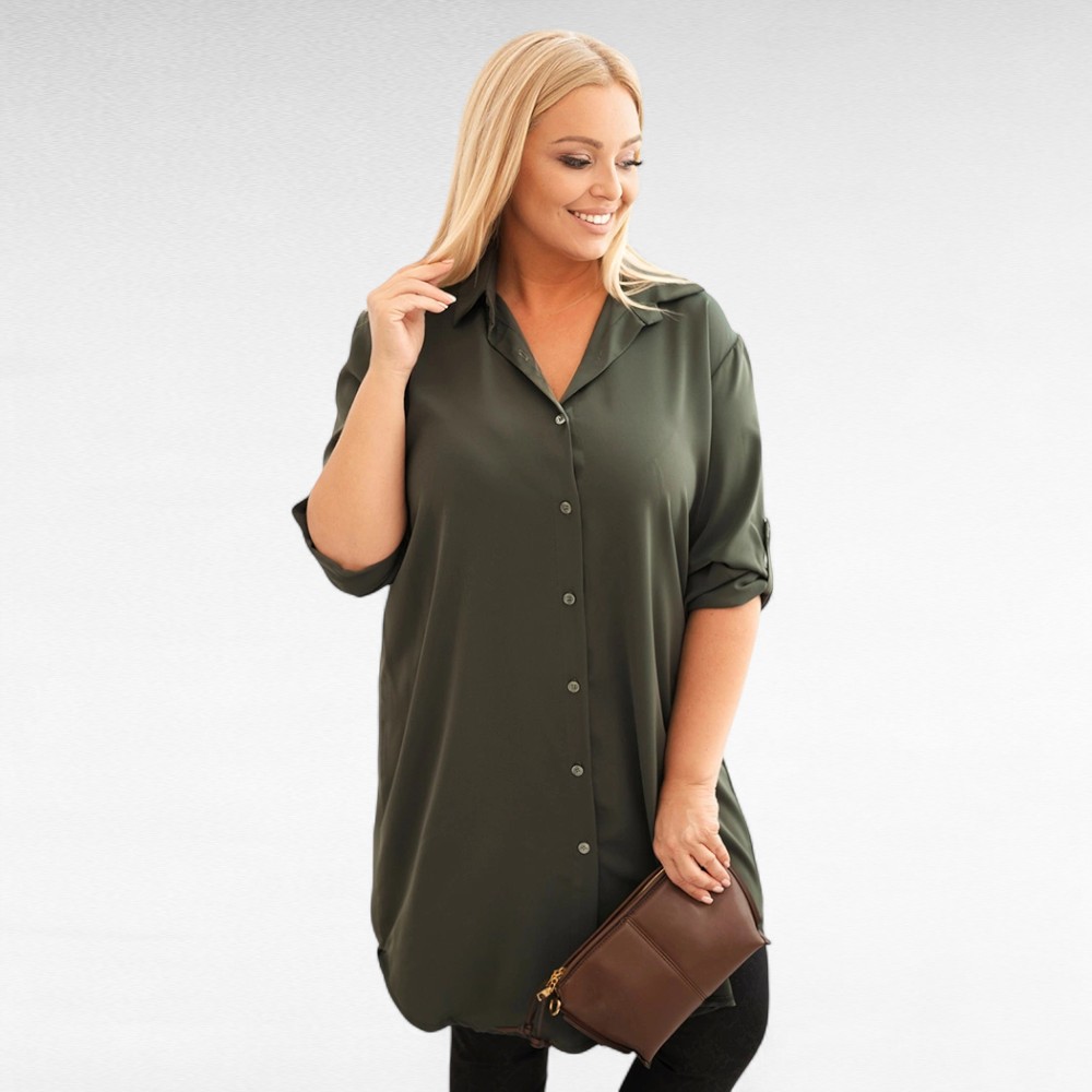 Klassikaline krae, eesolev nööbirida ja 3/4 varrukad, mida saab nööbikinnitusega lühemaks teha ning alt kaarjas lõige, annavad riietusele hoolitsetud, kuid vaba ilme. See pluus on ideaalne nii tööle, sõpradega kohvile või õhtul teatrisse minekuks.