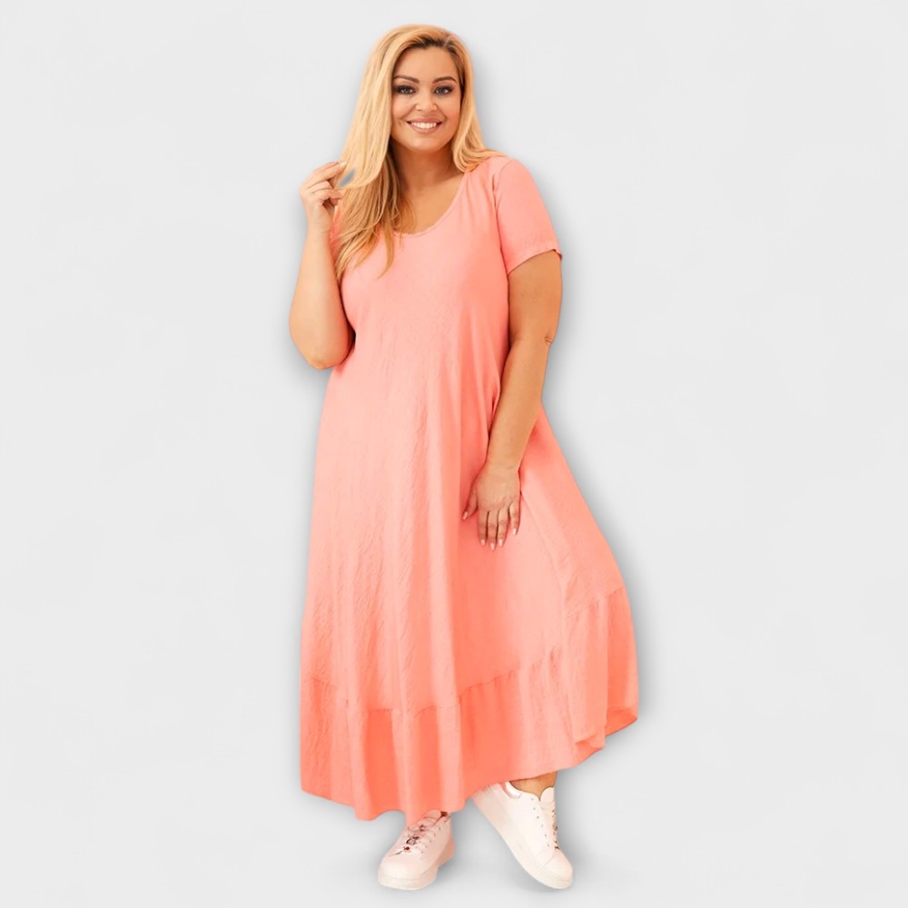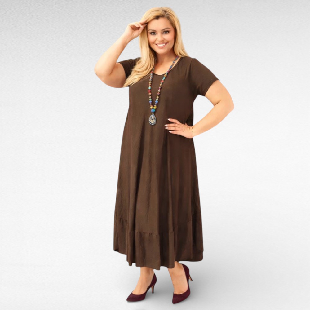 Elegantne ühevärviline pluss-suuruses kleit, mis ühendab mugavuse, liikumisvabaduse ja naiseliku stiili. Kvaliteetne hingav 100% viskooskangas tagab kerguse ja hingavuse.