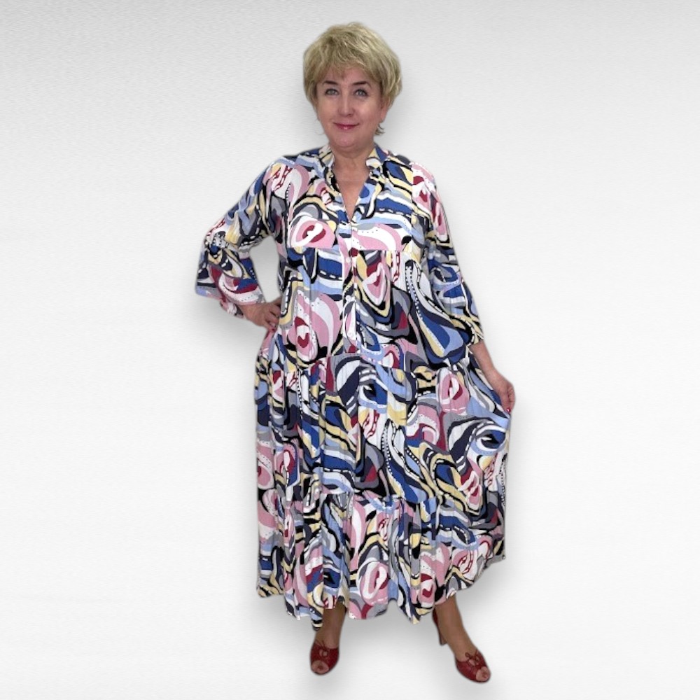 Lase suvel end kanda kerguses ja värvidemängus, mida pakub see Itaaliast pärit “Fly Out” brändi pluss-suuruses kleit. Selle roosa-ja sinisekirju abstraktne muster toob esile sinu isikupära ning lisab igasse päeva energiat ja enesekindlust.