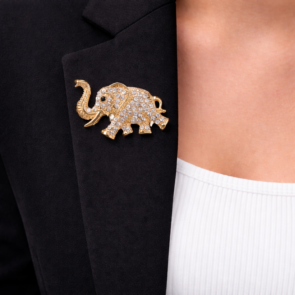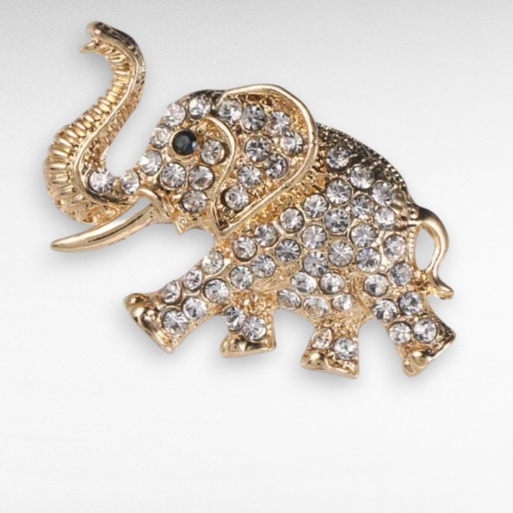 Too oma stiili killuke isikupära ja sügavamat tähendust selle kauni elevandiprossiga. See detailiderohke kuldset tooni pross, kaunistatud säravate kivikestega, püüab pilku igas valguses ning lisab sinu outfit’ile luksusliku ja enesekindla puudutuse.