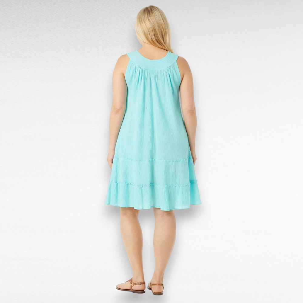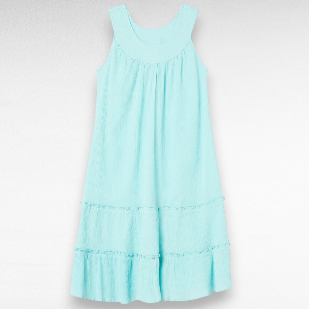 Mündiroheline kortsuriidest alt laieneva lõikega satsiline ilma varrukateta suvekleit Inglismaalt firmalt “Anthony Richards”.