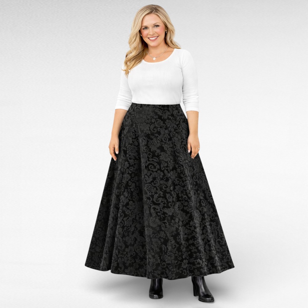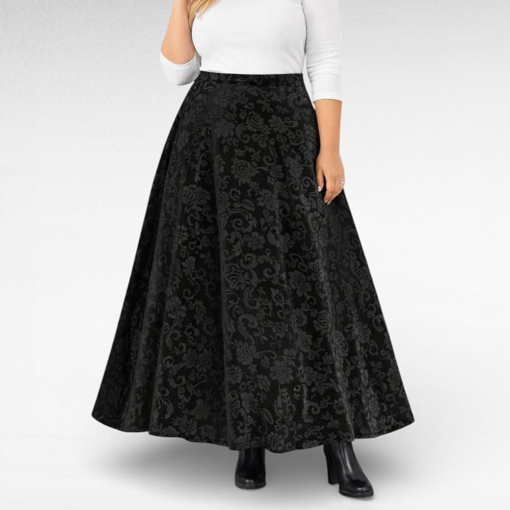 „Viola“ on seelik naisele, kes hindab rahulikku luksust ja kandmismugavust. Sügavmust samet, mida kaunistab peen sissepressitud lillemuster, loob väärika ja naiseliku mulje ilma liigse edevuseta. See on seelik, mis mõjub vaoshoitult, kuid jääb meelde.