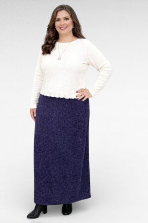 Ilus sirge lõikega mustjashall stretchikas teksaseelik firmalt “Ms Mode”. Kaasas armas võtmehoidja. Eest kinnitub luku ja metallnööbiga, ees ja taga taskud. Altäär on kaarjas.
