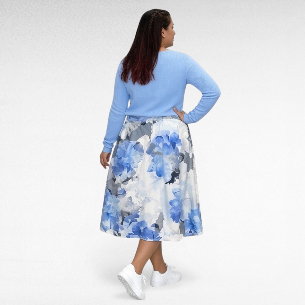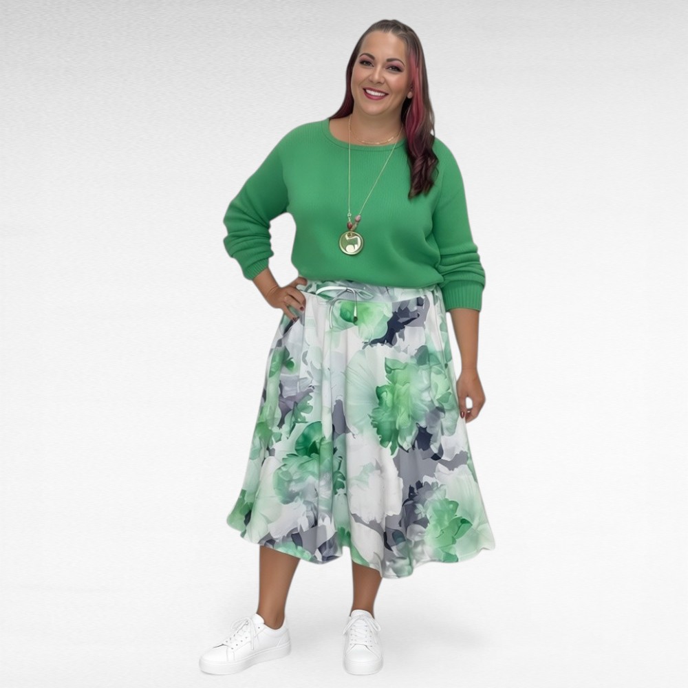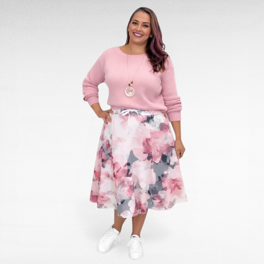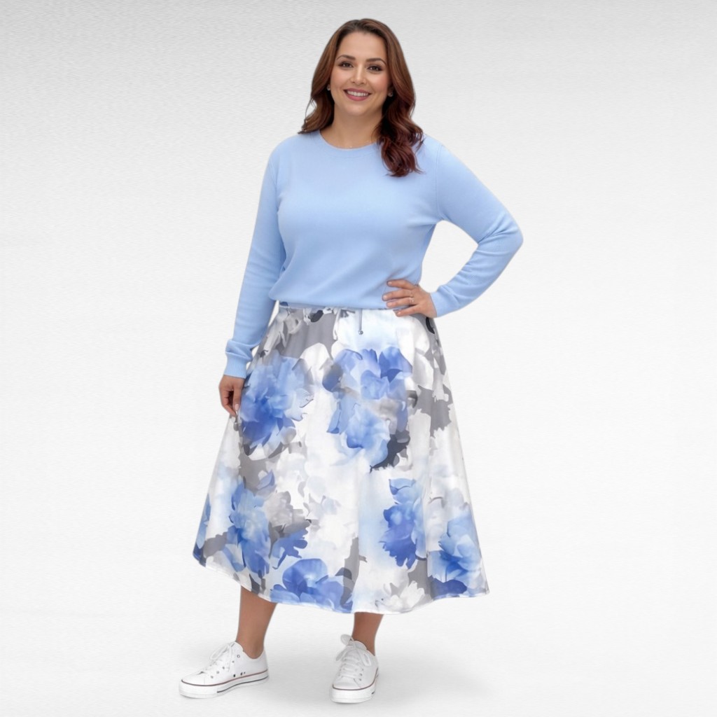Lillemustriga alt laieneva tegumoega vöökohast kummi ja tunnelvööga pikem väga heast hästilangevast keskmise paksusega materjalist midipikkusega seelik “Siret”. Külje peal taskud. Pikkus jääb poole sääreni.