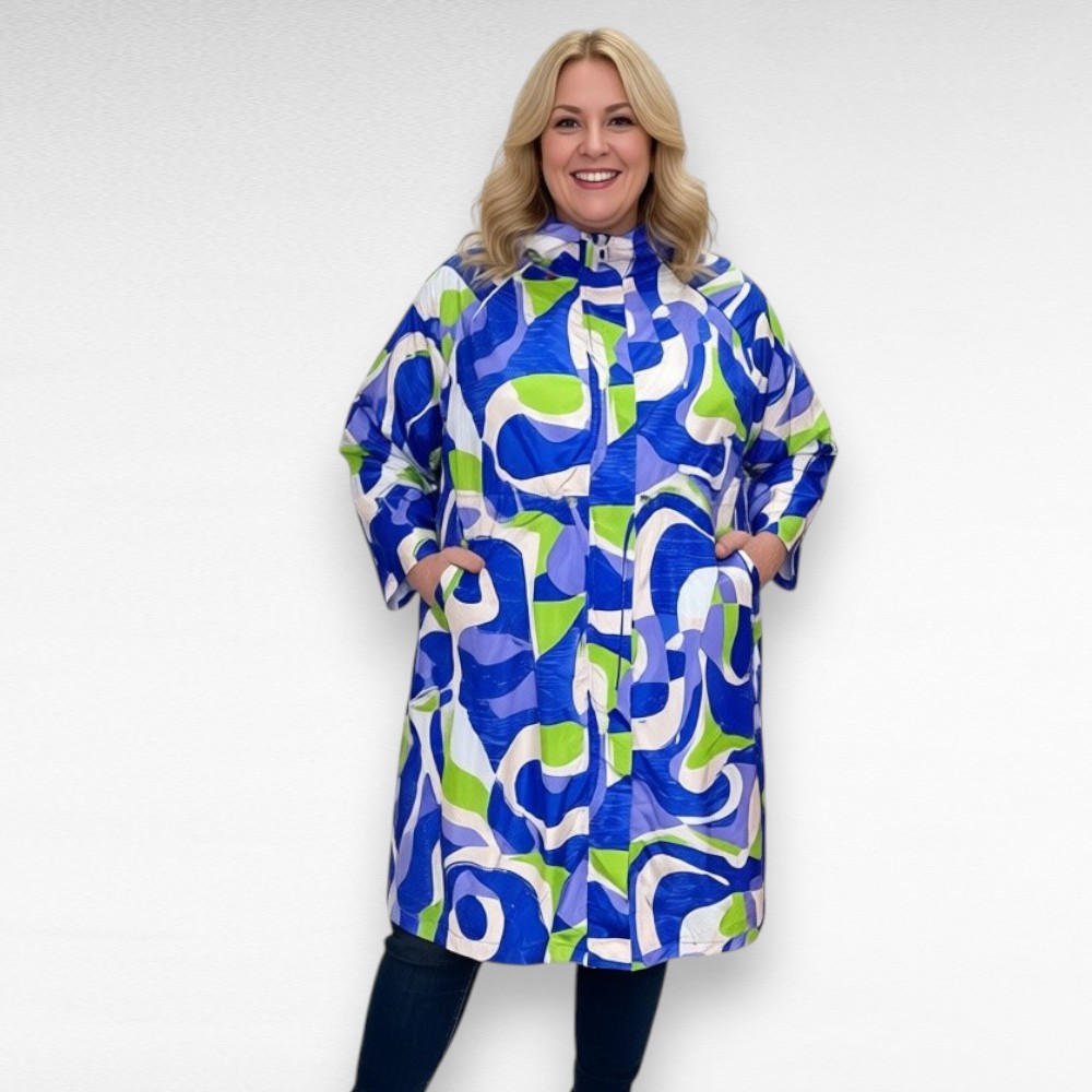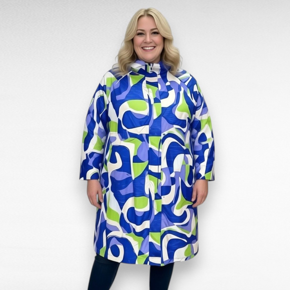 Too oma garderoobi värvi ja energiat selle pilkupüüdva “Fly Out” Itaalia disainiga kevadsuvise jope/mantliga. Sinise-ja kollasekirju efektne abstraktne muster loob tõeliselt värske ja rõõmsa meeleolu – ideaalne kaaslane just hooajaks, mil loodus tärkab ja päevad muutuvad pikemaks.