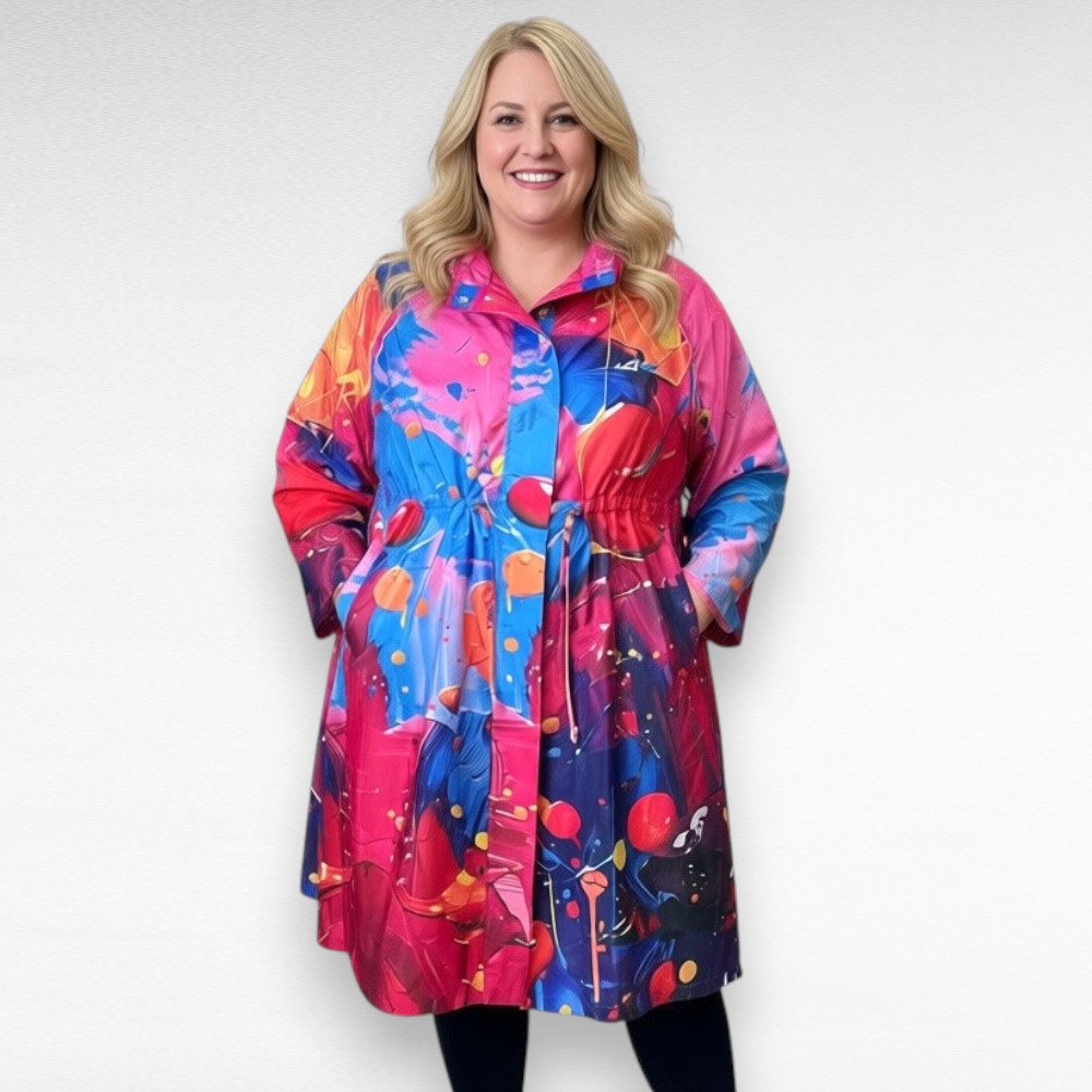 Too oma garderoobi värvi ja energiat selle pilkupüüdva “Fly Out” Itaalia disainiga kevadsuvise jope/mantliga. Sinise-ja roosakirju efektne abstraktne muster loob tõeliselt värske ja rõõmsa meeleolu – ideaalne kaaslane just hooajaks, mil loodus tärkab ja päevad muutuvad pikemaks.