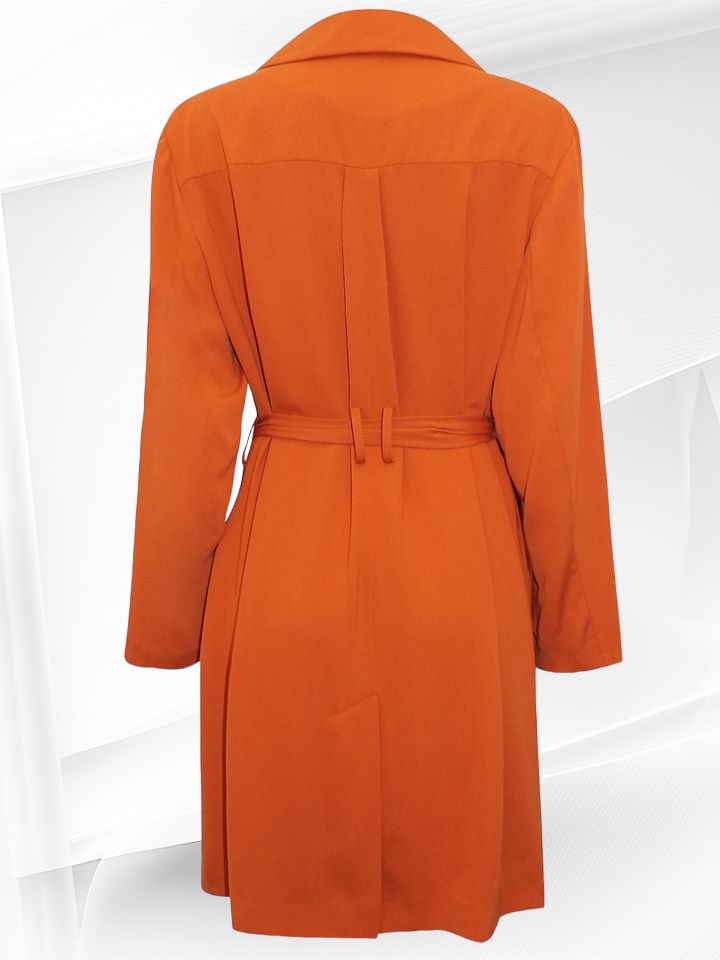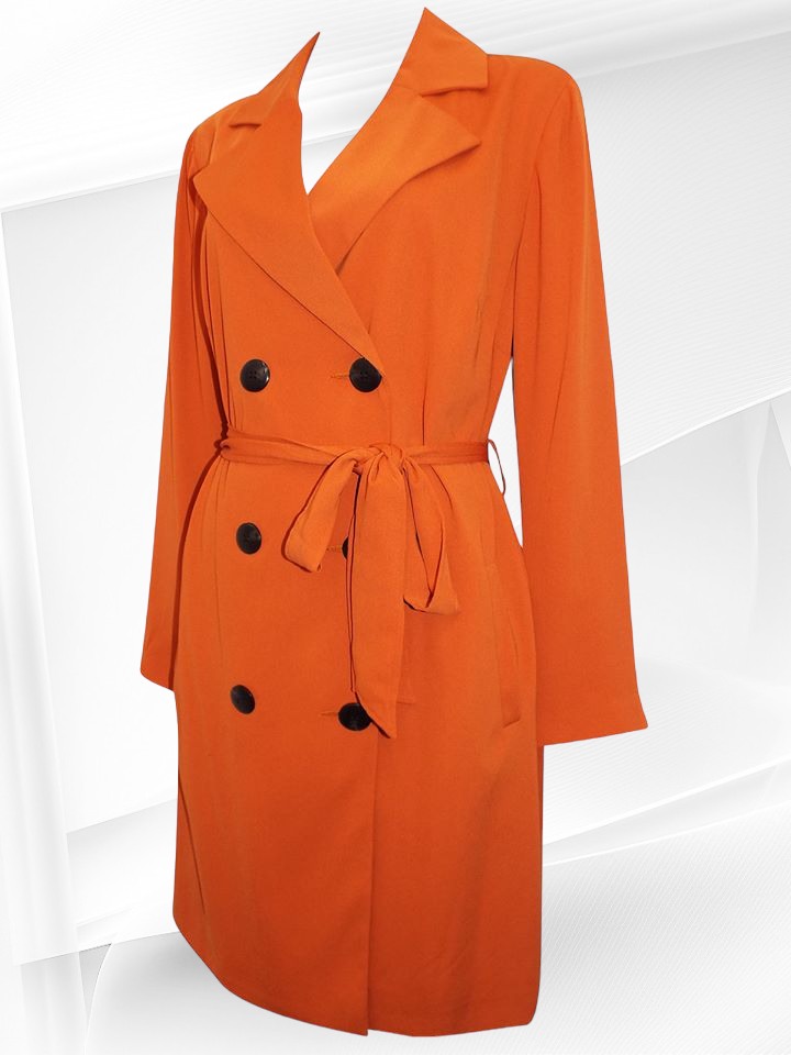 Kena kevadsuvine keskelt vööga, alt voodriga telliskivioranži tooni ( väga ilus ergas toon) mantel Inglismaalt firmalt “Matalan”.