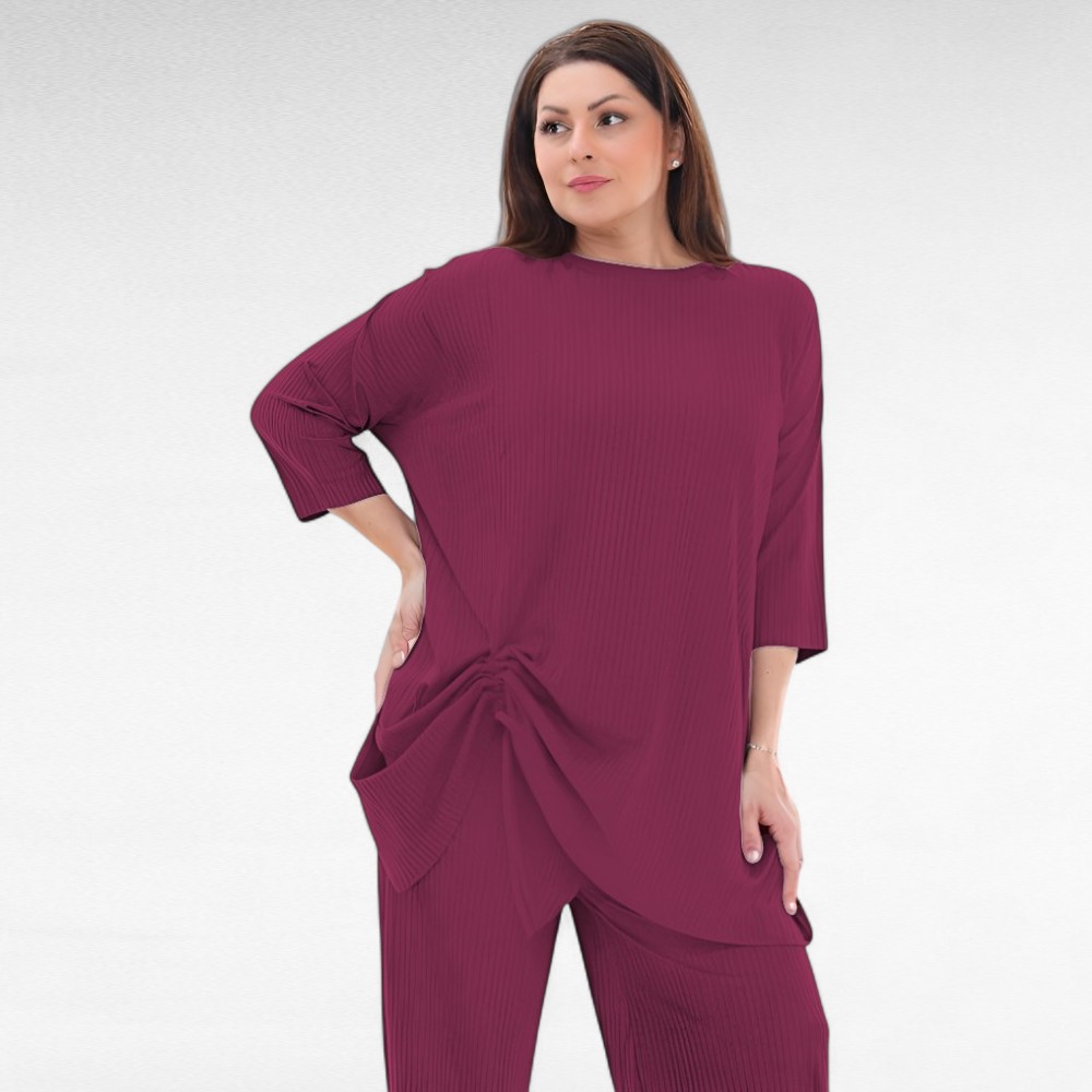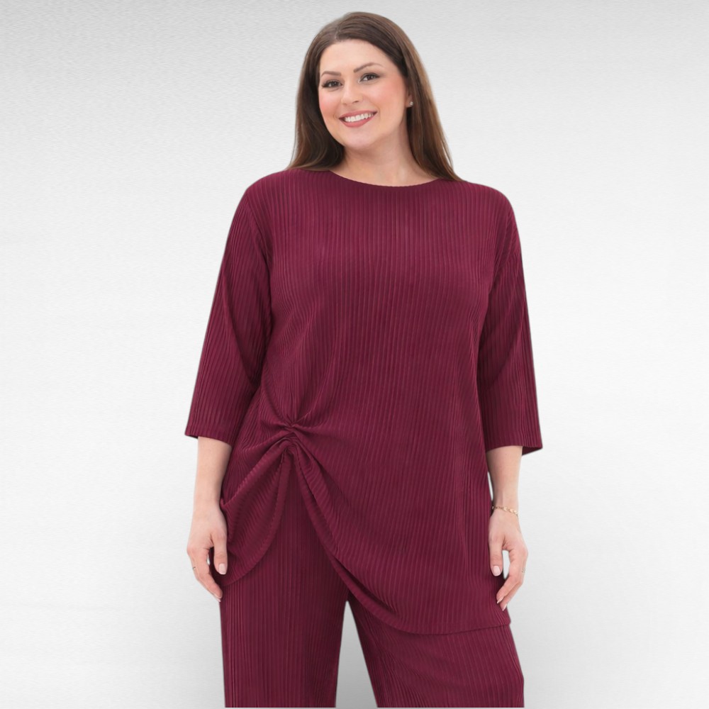 Õlast pikendatud varrukad, mille pikkus ulatub küünarnukini, loovad kauni joone ja lisavad mugavust.