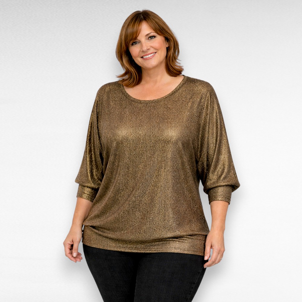 Naiselik kimonolõikega sätendav poolpikkade varrukatega pidulik pluss suuruses naiste pluus “Dolores”. Lõige läheb alt kitsamaks ja jääb kenasti puusale langema. Rinnaosa on avaram kui puus, kimololõikega avarad kolmveerandpikkusega varrukad. Varrukad on alt pisut kitsenevad ja üles tõmmatud natuke, et paremini seljas istuks.  Tagantvaates on pluus sirgeks tõmmatud.