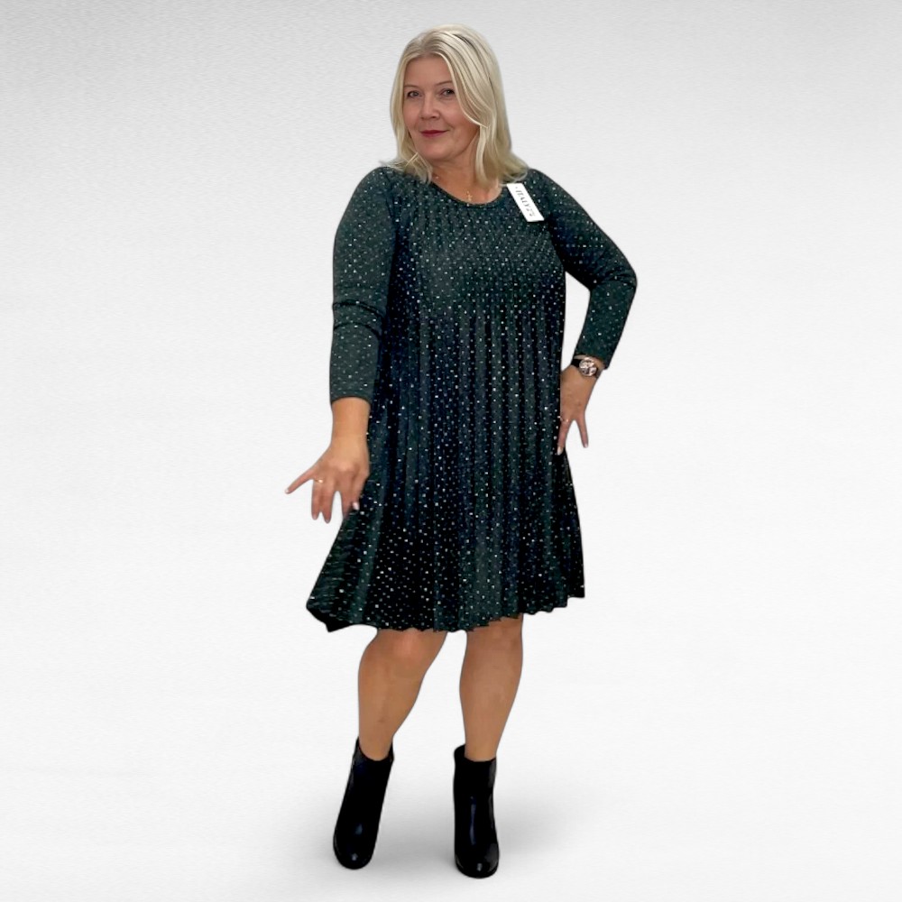 Väga kaunis sätendav alt laieneva lõikega pikkade varrukatega lühem plisseerkleit “Italy Moda”.