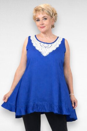 Mugav pehmest veidi venivast puuvillasest kangast rinna pealt suure lillemustriga must sirge lõikega V-kaelusega tuunika “Betti Fashion”. Poolpikad õlast pikendatud varrukad. Tagant on 8cm pikem kui eest, altäär on tagant kaarjas. Väga mõnus sügisel ja talvel teksade peal kanda.