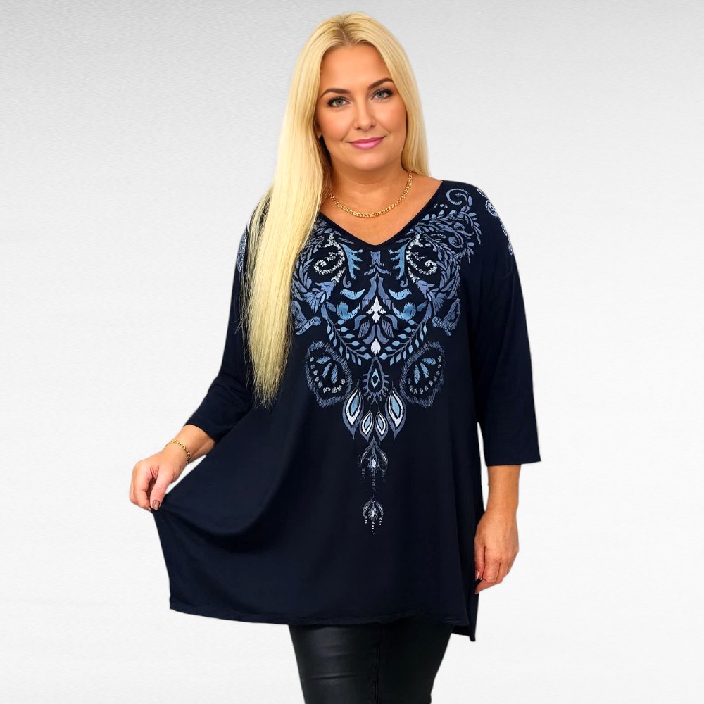 TU.624 – Must sinisekirju mustriga V-kaelusega tuunika “Esmira Fashion”