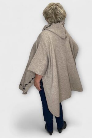 KA.401 – Luksuslik tikanditega kapuutsiga beež pontšo
