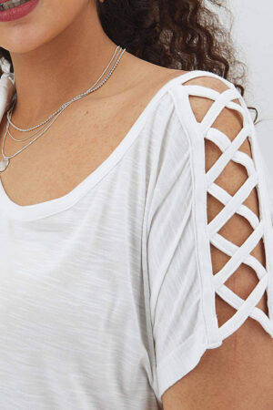 PL.014 – Valge õla pealt punutud paeltega pluus “Capsule”