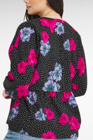 TU.519 – Must efektse roosimustriga V-kaelusega tuunika “Betti Fashion”