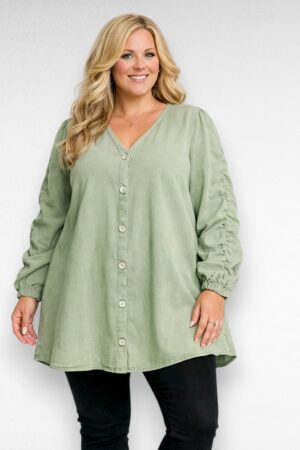 KL.181 – Roheline A-lõikega balloonvarrukatega taskutega kleit “JD Williams”