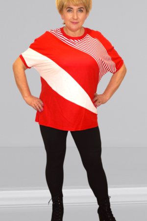 PL.089 – Geomeetrilise mustriga punase- ja valgekirju pluus “Hepburn”