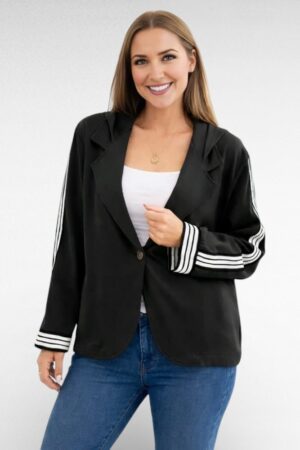 JA.127 – Stiilne triibumustriga kapuutsiga jakk/dressipluus