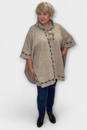 KA.401 – Luksuslik käsitöötikanditega kapuutsiga beež pontšo