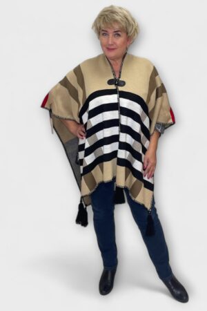 KA.403 – Luksuslik villasegune beež ruudulise mustriga mustriga pontšo