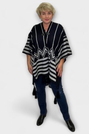 KA.402 – Luksuslik villasegune must hallitriibulise mustriga pontšo