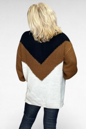 KU.039 – Valge-ja pruunikirju sakilise mustriga ülevalt lukuga sviiter