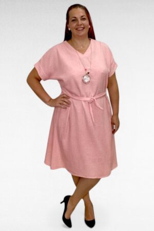 V-kaelusega keskelt vööga pluss suuruses naiste suvekleit (KL.073)