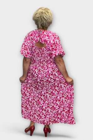 Roosakirju puhvis varrukatega pluss suurus naiste suvekleit (KL.555)
