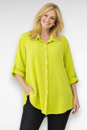 Musliinkangast eest nööpidega pluss suuruses pikem naiste pluus (PL.495)