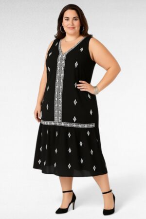 Must etnilise mustriga pidulik pluss suurus naiste kleit “Roamans” (KL.080)