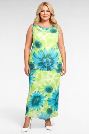 Laimiroheline lillemustriga pluss suurus naiste suvine kostüüm (KO.007)