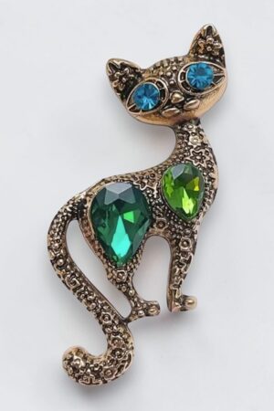 Sätendavate roheliste kivikestega kaunistatud kassikujuline pross kinkekarbis