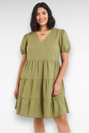 Khakiroheline satsiline linane naiste tuunika/minikleit “Simply Be” (TU.128)