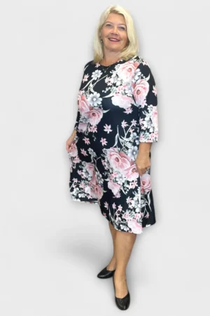 Tumesinine roosimustriga taskutega kleit “Miss Classic” (KL.018)