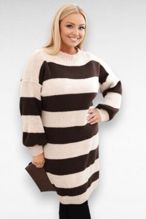 KL.753 – Soe pikem kõrge kaelusega musta ja beeži tooniga kootud kleit “Aike”