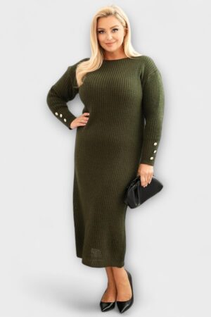 KL.880 – Kvaliteetne kõrgema kaelusega eest taskutega kootud kleit “Silja”