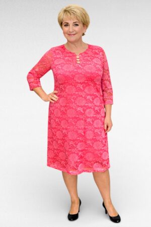KL.139 – Punaseruuduline alt nahaimitsiooni ja pitsiga A-lõikega kleit
